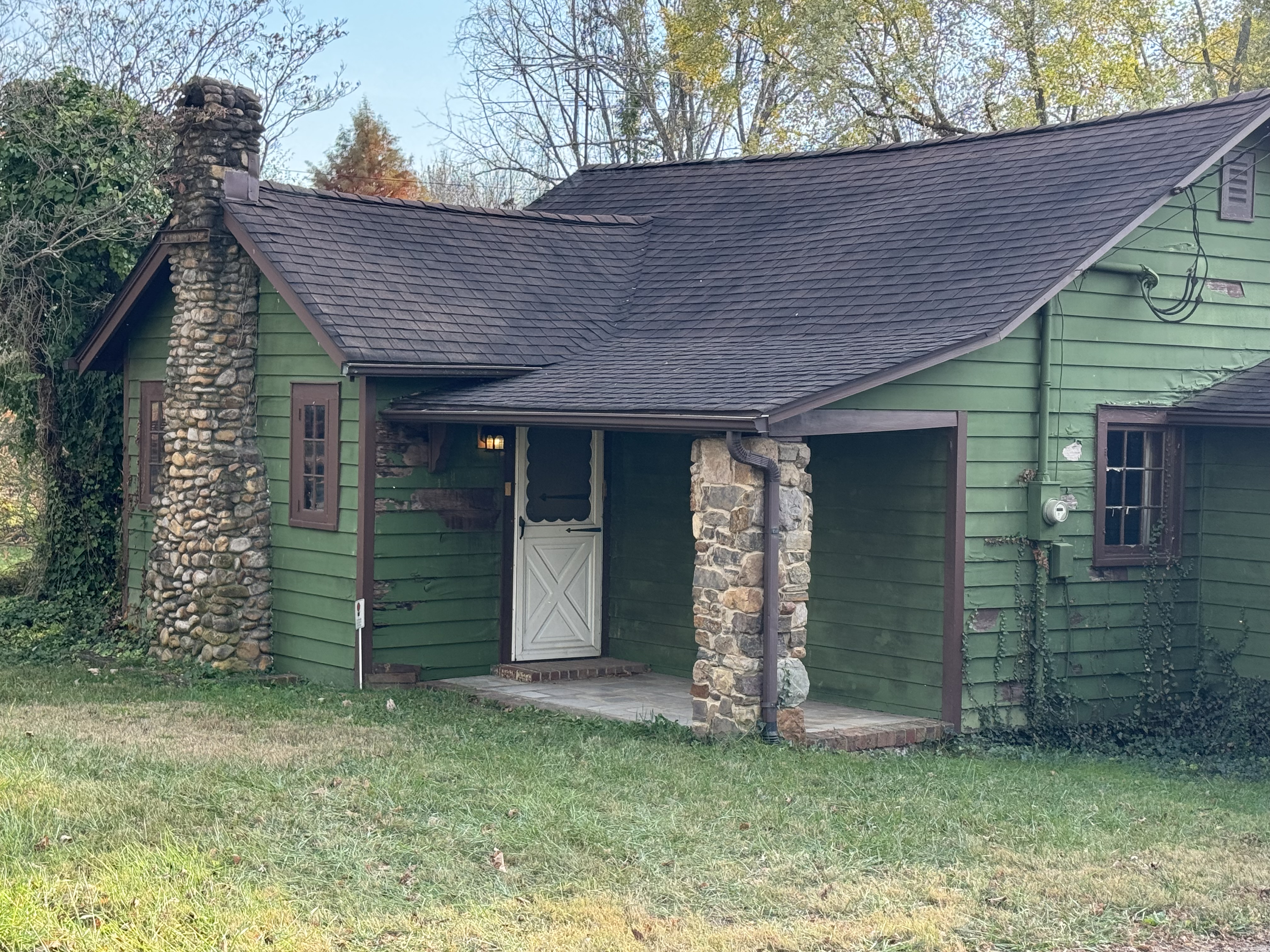 Little Stone Cottage with Green Siding