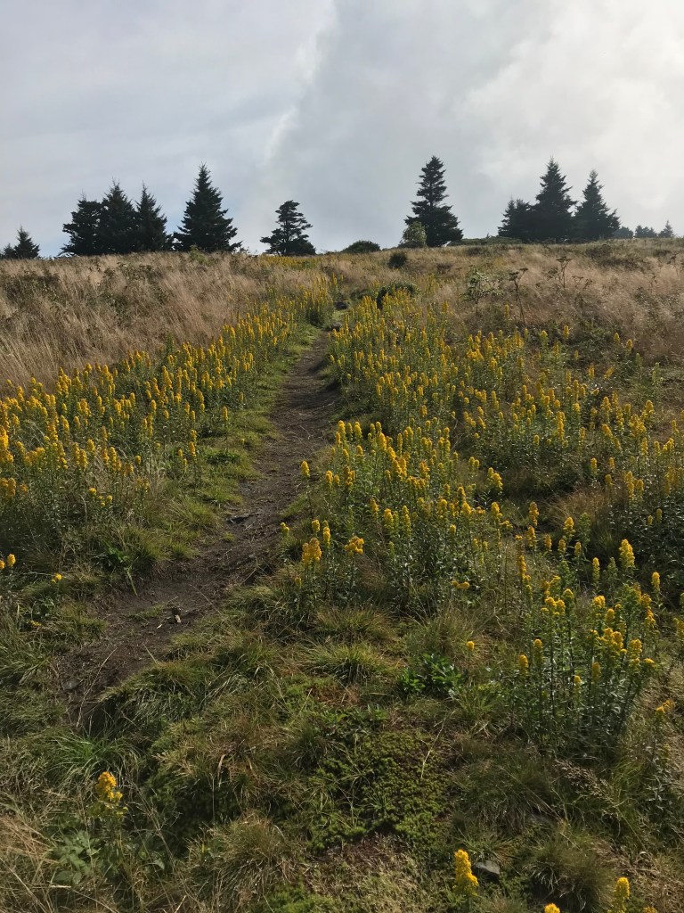 The trail to Round Bald is surrounded by brilliant goldenrod in fall, and the glorious leaves on the trees make a visit well worth your time.